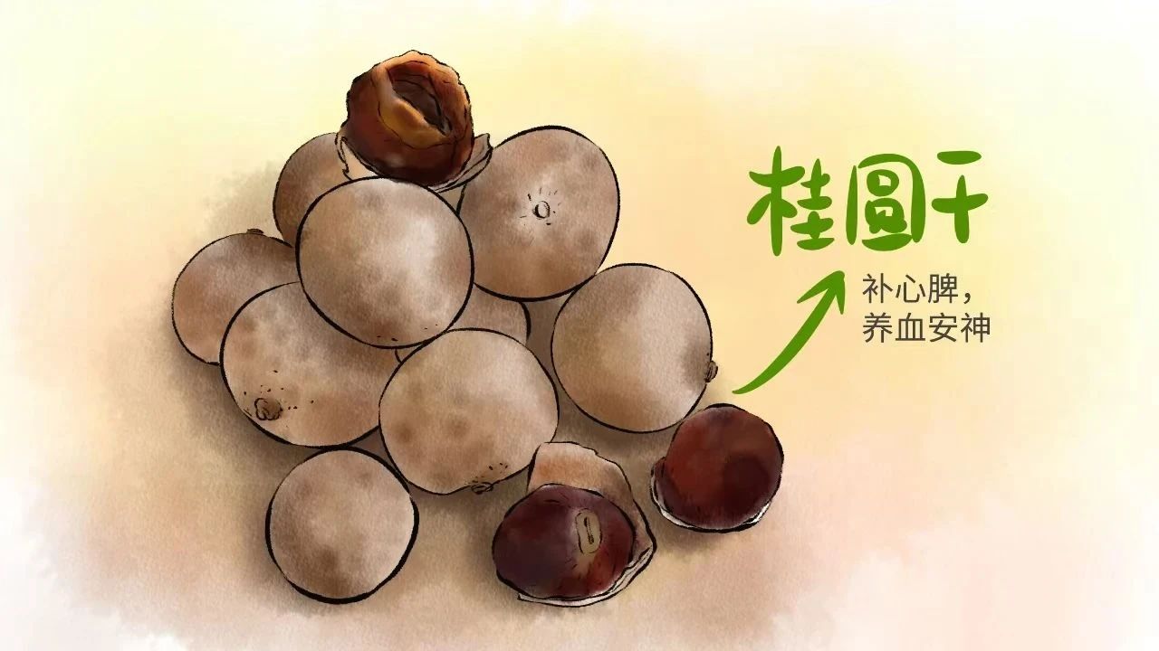 桂圆甘温,归心脾经。 既能补脾固气,复能保血不耗。 主治思虑伤脾,头昏,失眠,心悸怔忡,虚羸,病后或产后体虚,及由于脾虚所致之下血失血症 。 民间更是有,“南桂圆北人参”、“一粒桂圆三味药”的说法。