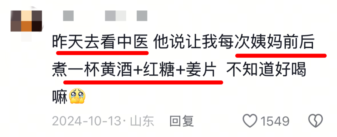 这个虽然不是啥医书验方,但上图网友反馈自己去看中医就让喝这个。从中医角度来讲,可能是这位网友存在寒凝淤血型痛经或量少。