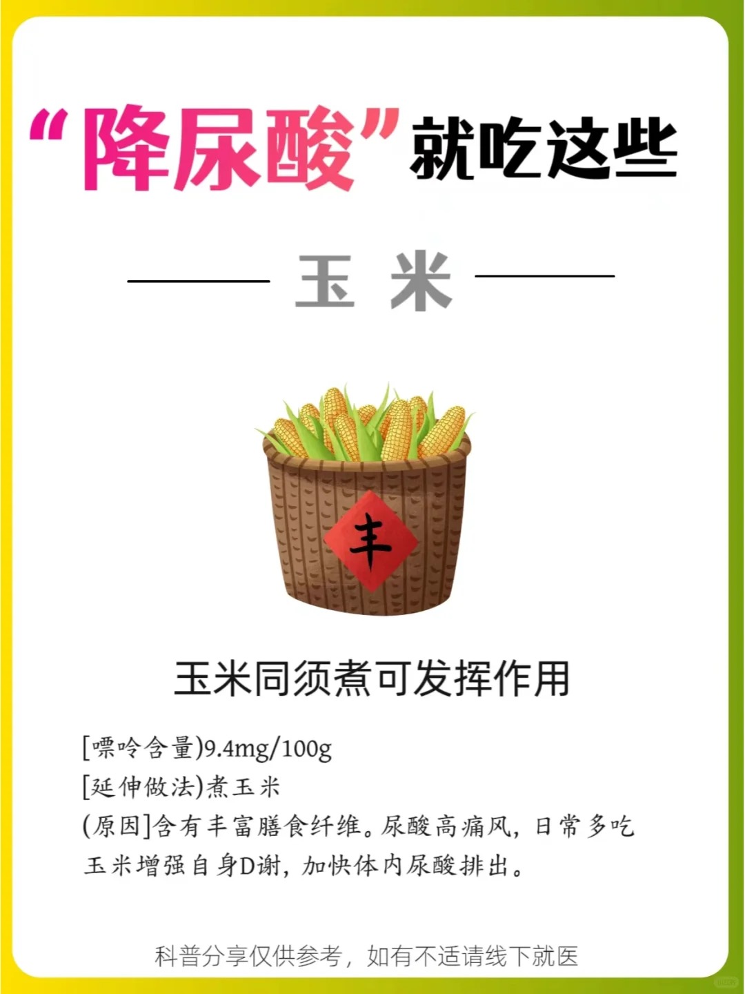 记住这些降尿酸冠军食物,保持良好的👌🏻饮食习惯,让尿酸高远离你!👍💪